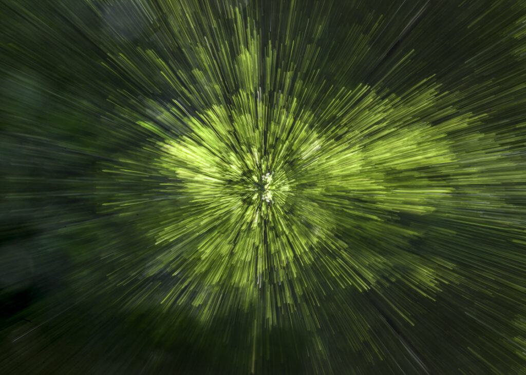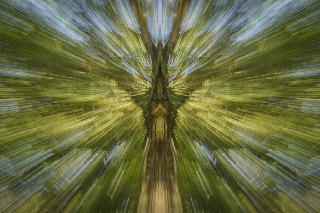 Image d’un chêne (si, si …) obtenue, cette fois, en zoomant pendant le déclenchement. Puis j’ai ajouté en superposition, une copie de l’image symétrique dans Photoshop.